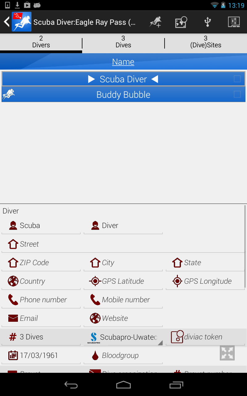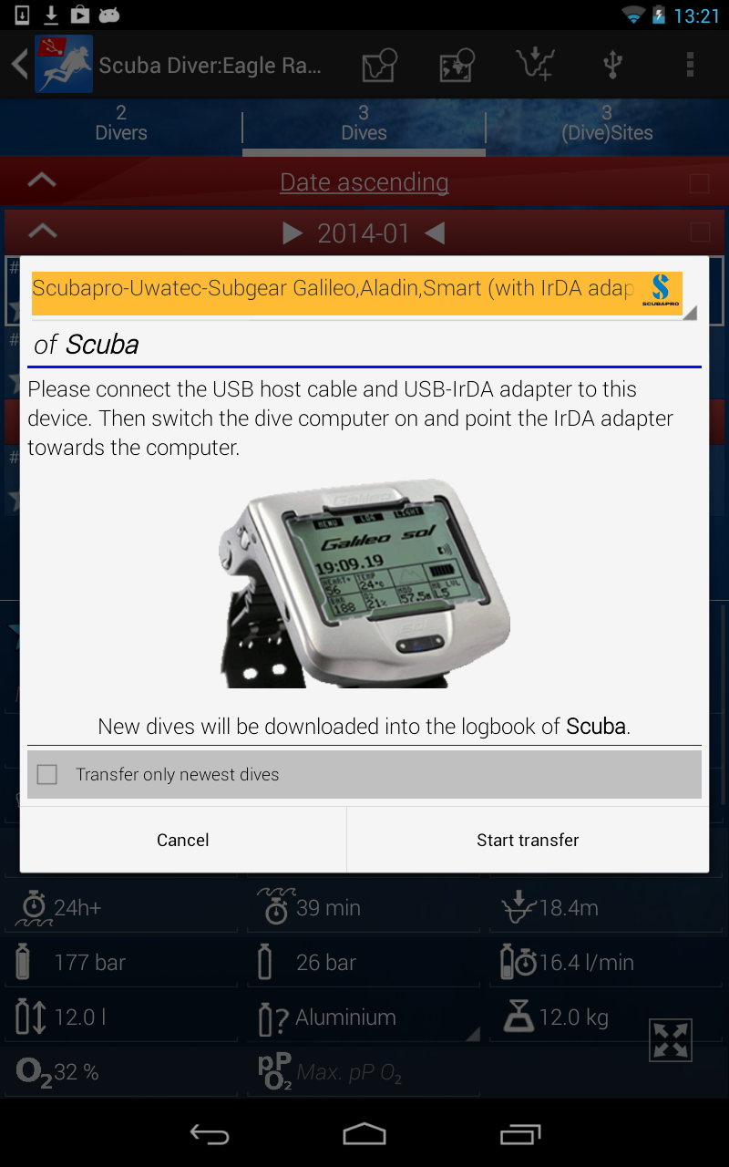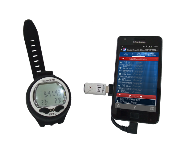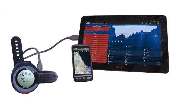 DiveMate USB auf 10"-Tablet und Tauchcomputer