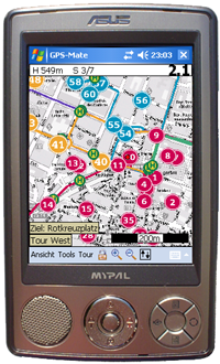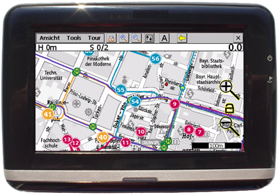 Falls Sie zu Ihrem Handy oder PDA auch noch einen GPS-Empfänger haben, lassen Sie sich per GPS zu den Einrichtungen oder Bushaltestellen führen.