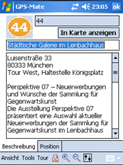 LocMate verbindet die Software GPS-Mate mit dem Münchner Stadtplan und den digitalen Touren der Langen Nacht der Münchner Museen 2010. Damit haben Sie alle Infos zu den Touren der Langen Nacht der Münchner Museen auf Ihrem PDA, Handy oder Notebook mit dabei.